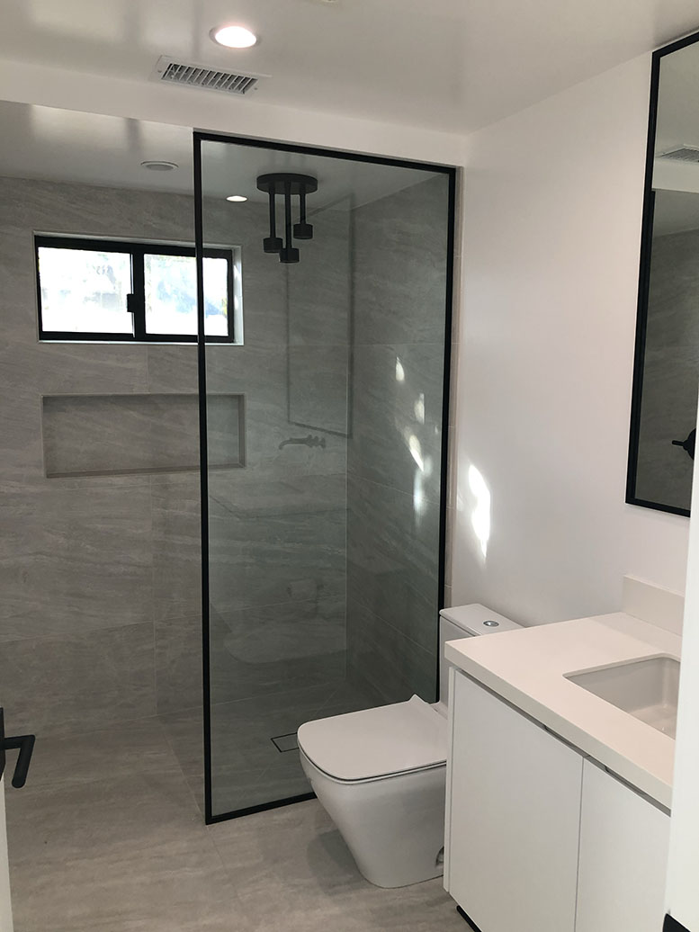 One growing trend in the bathroom industry is frameless shower enclosures. Frameless shower doors retain water as effectively as an average metal-framed door would. They are much easier to keep clean because there are no hidden crevices from metal frame where soap, water, and more can start build up and create mildew. With a frameless enclosure your shower will last longer and require less maintenance.