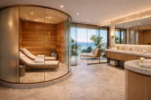 Our Van Nuys team fabricates precision glass systems designed for spa environments requiring durability, clarity, and structural integrity.