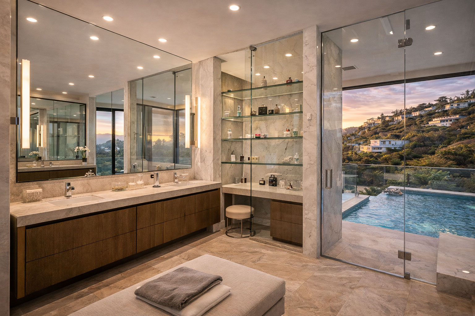 Detail-driven glass elements often make the biggest visual impact. From oversized mirrors to floating glass shelves, we fabricate and install specialty glass pieces that elevate interior spaces throughout Malibu homes.